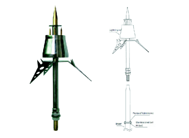 The lon Generator inside allows the Lightning Conductor to intercept and catch a potentially dangerous Lightning Strike earlier than Simple Rod Conductors and ground it safely.